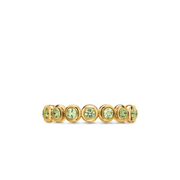 Bezel Set Band Ring in 18K Yellow Gold with Peridot, 4mm Image 3 Orloff Jewelers Fresno, CA