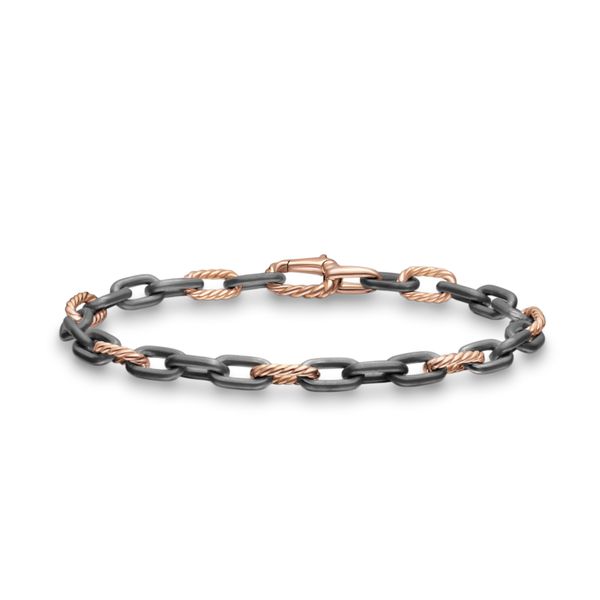 DY Madison® Chain Bracelet in Grey Titanium with 18K Rose Gold, 6mm Image 2 Orloff Jewelers Fresno, CA